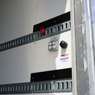 Pictured above is unit designed specifically for servicing refrigerated units on box vans and tractor trailers. This unit is an 18x96x96. Meaning 18ft long, 96 inches tall, and 96 inches wide. The interior of this unit is covered with an Alu-Poly material, creating a sleek finish and sturdy surface. It is equipped with 2 rows of E-Track down the side walls, and another additional row across the front wall. This unit has our 1 1/8" thickness extruded aluminum. The aluminum creates a very strong substrate, and provides the user with unmatched durability. Many specialty items were added in this specific unit, including : 120V Outlets, 10,000 watt power inverter, LED work lights, backup camera, and more. Our standard features are also included in this unit : LED dome lights, aluminum roof skin, stainless steel rear end, grab handles, composite roll up door. The liftgate shown here is a Dhollandia DHVO K1 Column Lift Gate, designed specifically for this end users application. (REF# 56033)